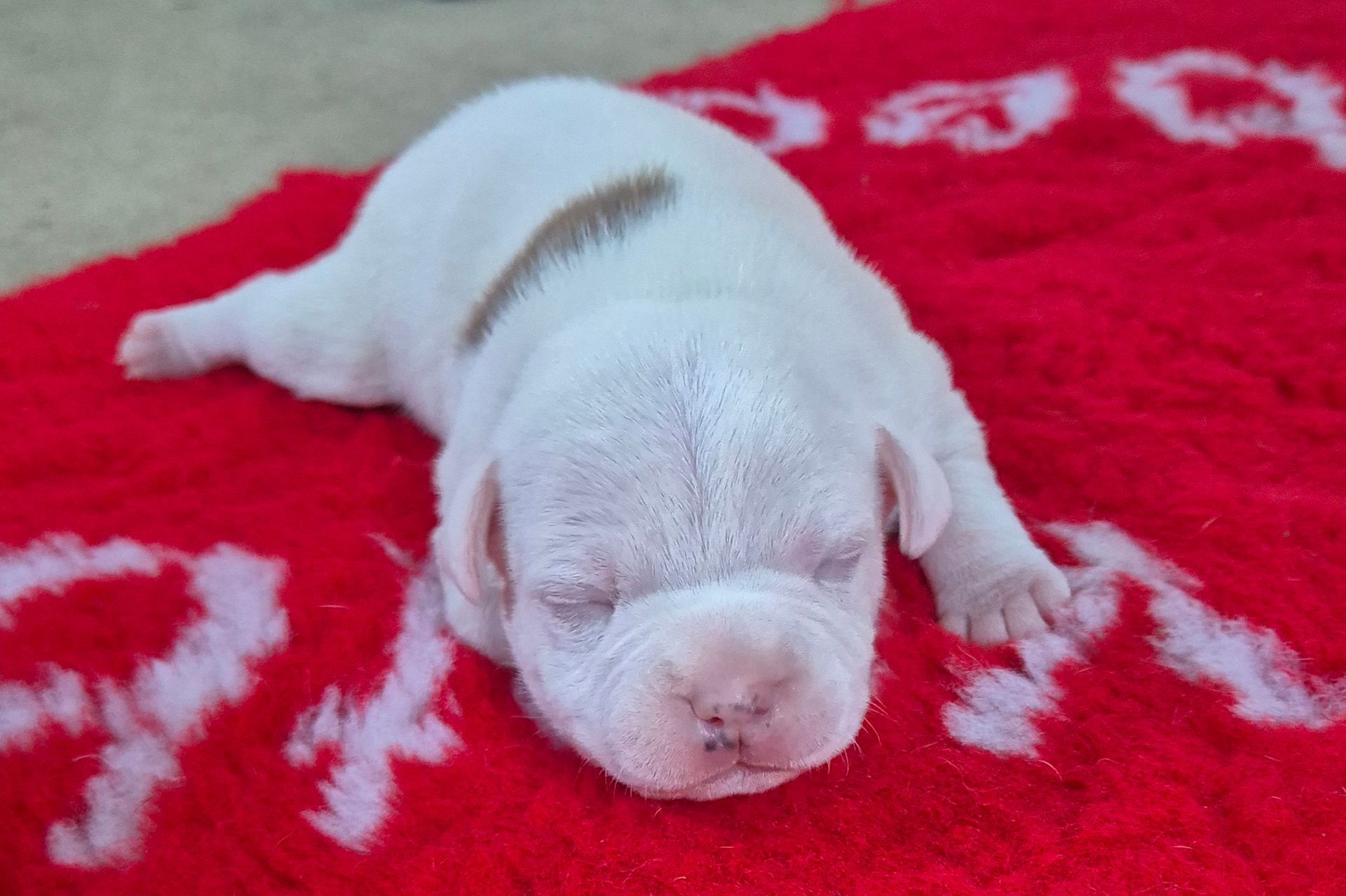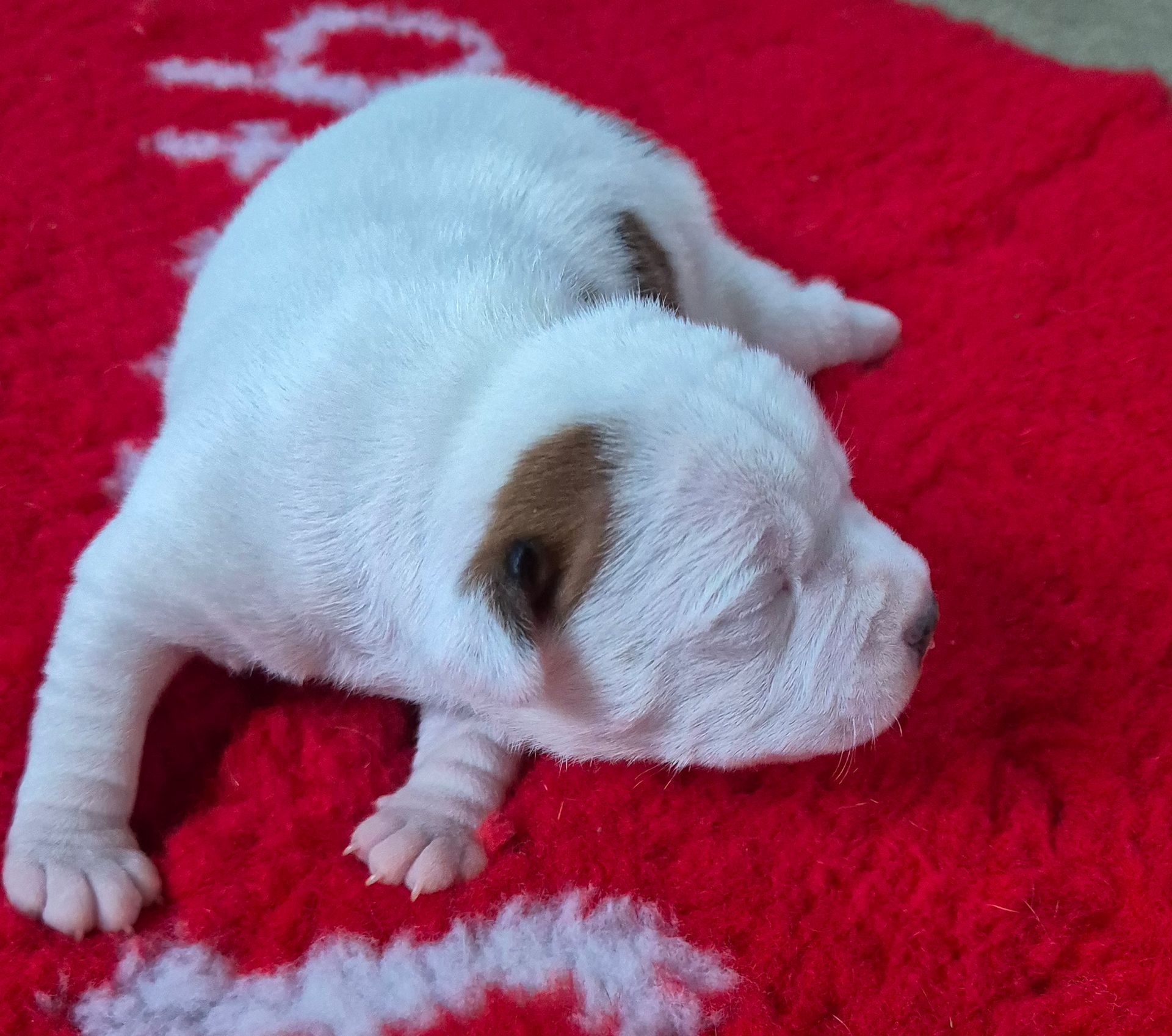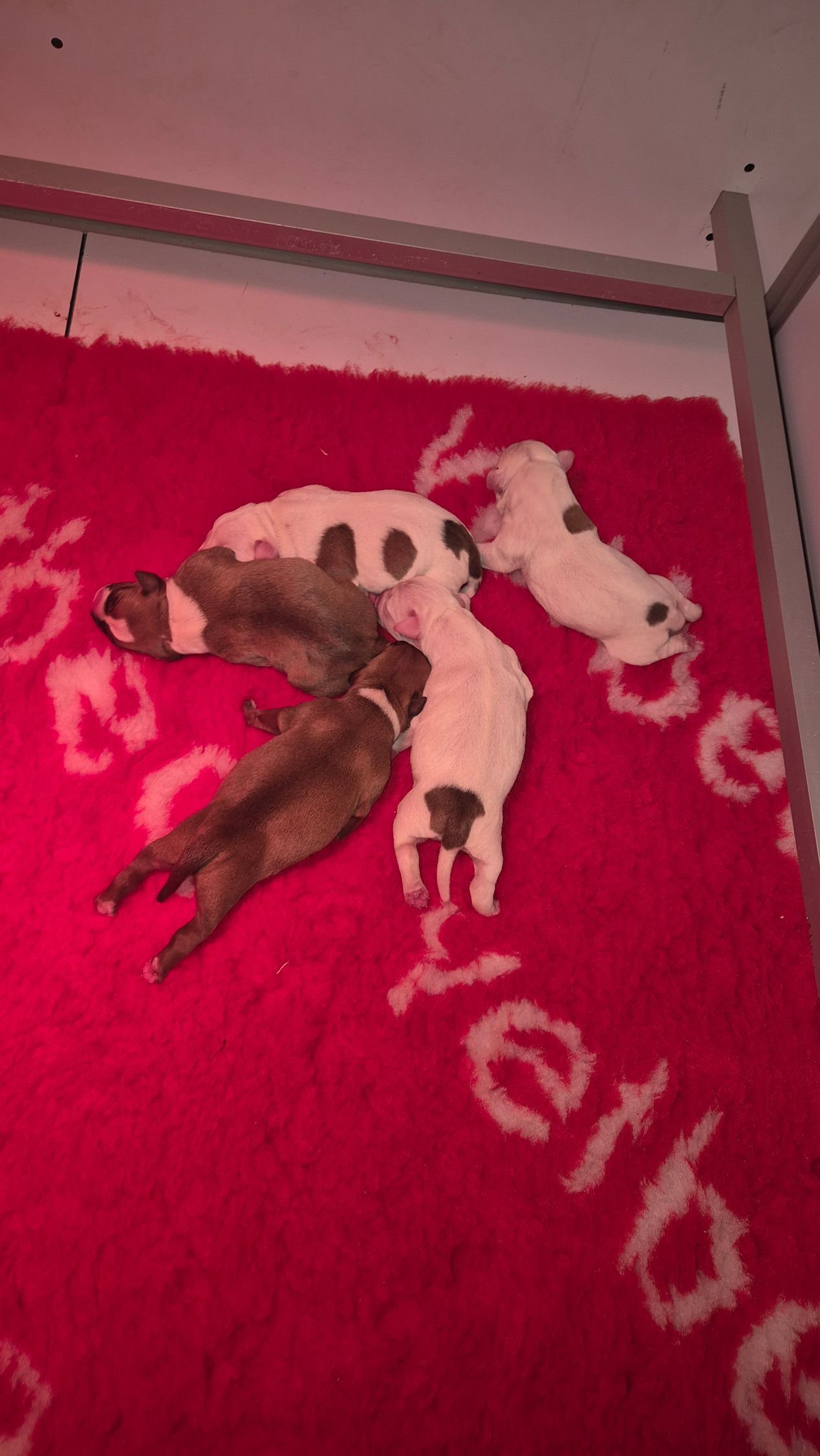 Tiloute et Tino de la vallée de l'hermine blanche sont les heureux parents de cinq staffies, trois femelles et deux mâles. tout le petit monde va bien...